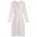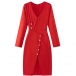 Fashion Solid Color V-neck Buttoned Slit Bodycon Dress
