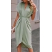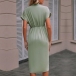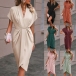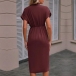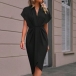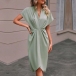Robe tendance à manches courtes, ourlet asymétrique, col en V et couleur unie
