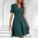 Fashion Solid Color V-neck Dot Ruffle Elastic Waist A-line Dress