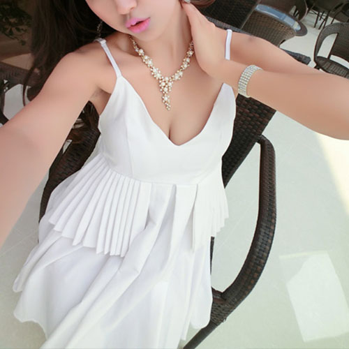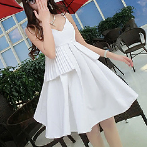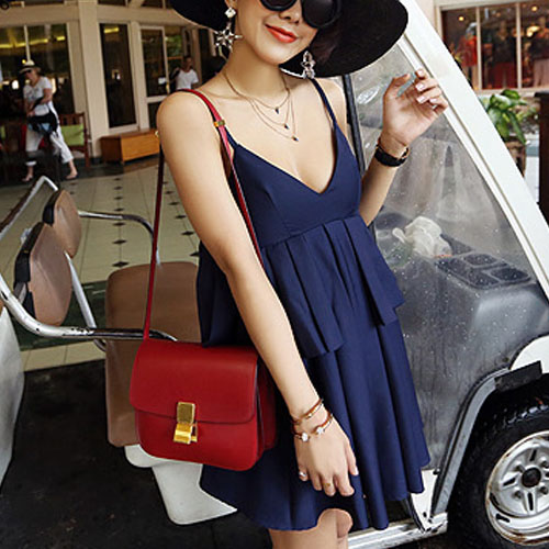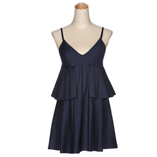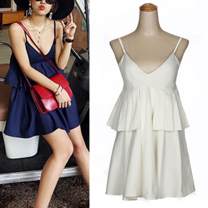 This dress features solid color style,with sling and v-neck design. Flouncing design makes it