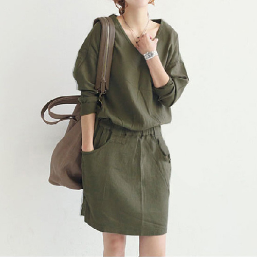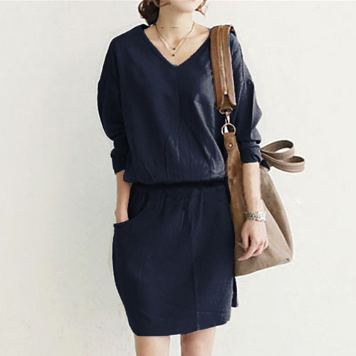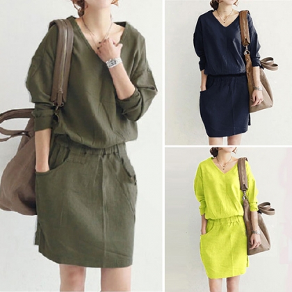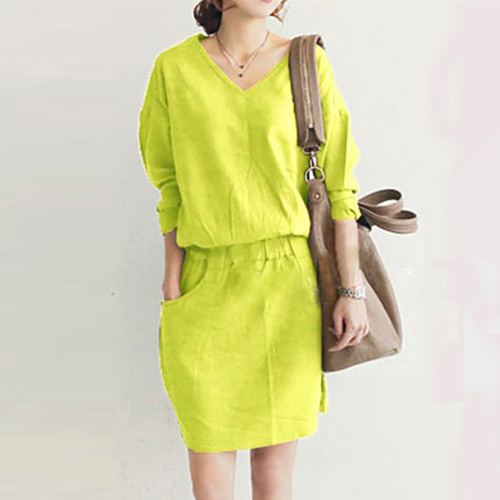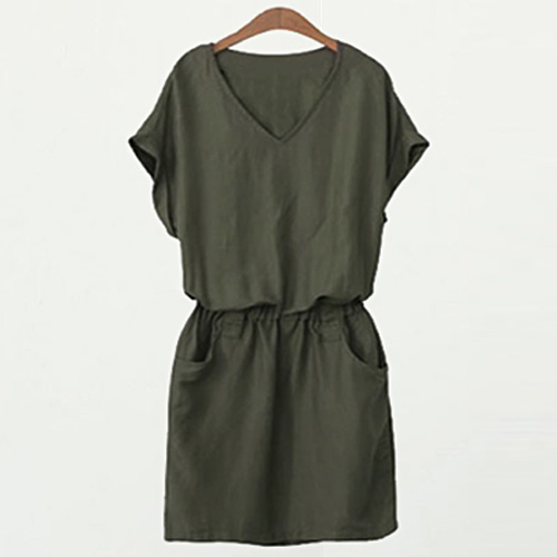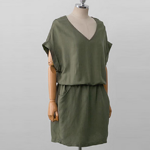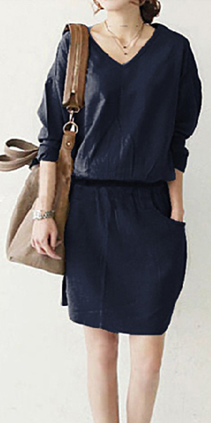 Stay stylish and comfortable in this dress. Solid color,with v-neck and gathered waist design,can perfect show