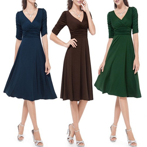 Show your graceful and capable character. Look at this dress. Solid color design, it can be matched