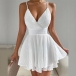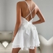 This dress is the epitome of fashion and elegance, featuring a solid color design, a flattering V-neckline, a high waistline, and a backless detail in a chic mini length. White and black, which one do you like?