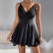 Fashion Solid Color V-neck High Waist Backless Mini Dress