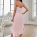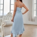 Fashion Solid Color V-neck High-waist Ruffled Hemline Slip Dress