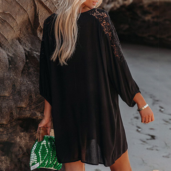 This dress features the split V-neck, lace spliced shoulder design. It is made of high-quality materials and is very comfortable to wear.