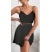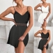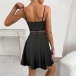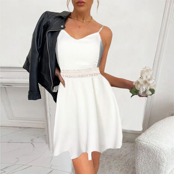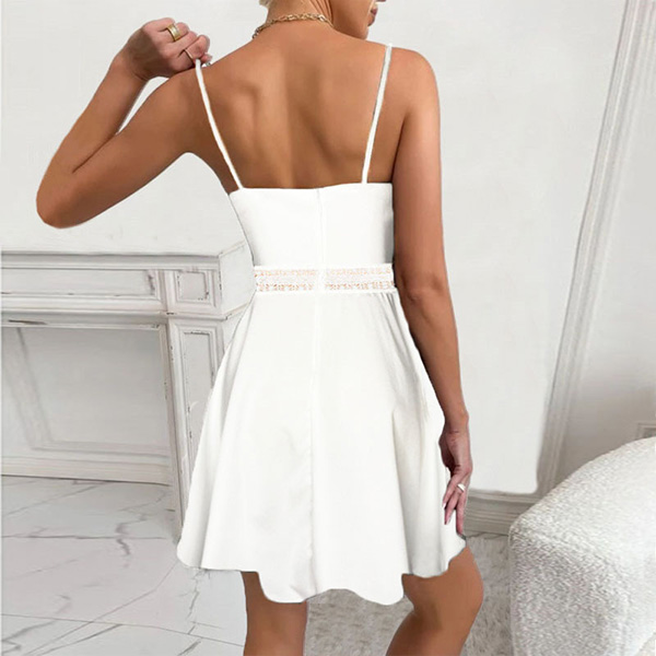 Fashion Solid Color V-neck Lace Spliced Slip Dress