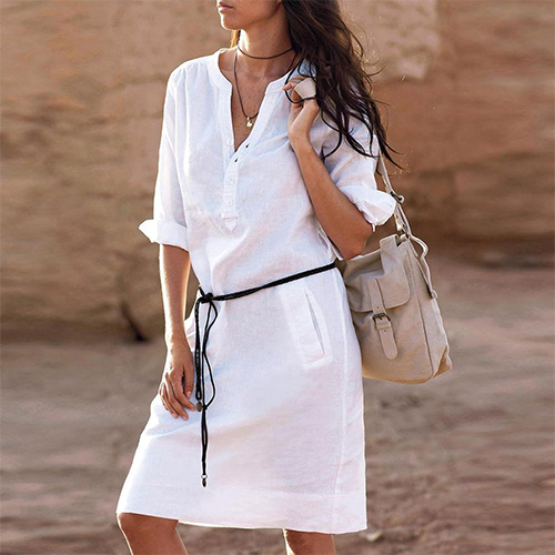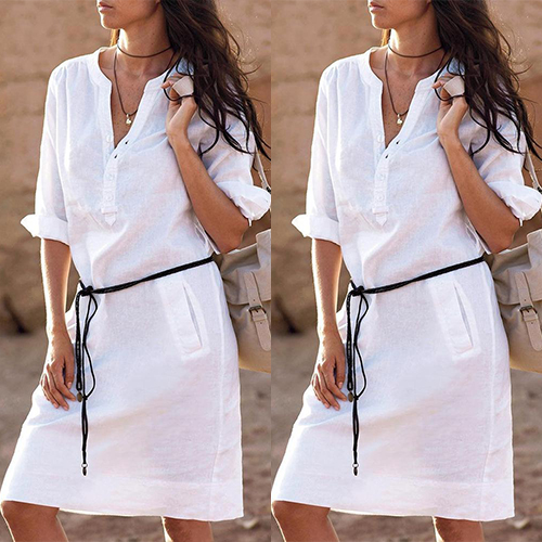 Slip into this shirt dress for a stylish and charming look. Solid color style,with v-neck design