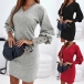 Fashion Solid Color V-neck Long Sleeve Bodycon Dress