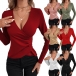 Fashion Solid Color V-neck Long Sleeve Buttoned Shirt