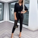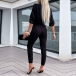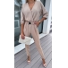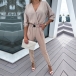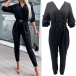 This jumpsuit features a flattering V-neckline that elongates your neck and shows off your collarbones. The long sleeves provide coverage while still keeping the look stylish and chic. The cinched waist creates a flattering silhouette, highlighting your curves and creating a feminine shape. Made from high-quality materials, this jumpsuit is comfortable and durable.