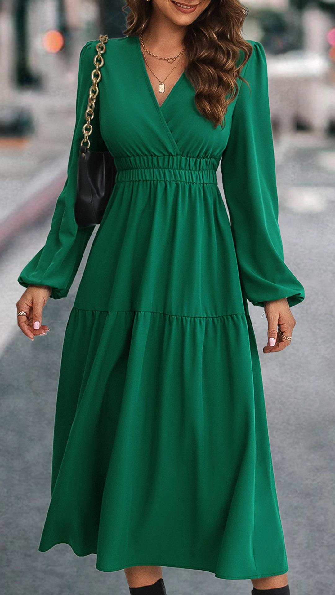 This midi dress features solid color accent, sexy V-neck and long sleeve. The cinch waist detail creates a flattering silhouette, accentuating your curves and adding a stylish element to the dress. Pair it with heels and statement jewelry for a complete and on-trend ensemble.