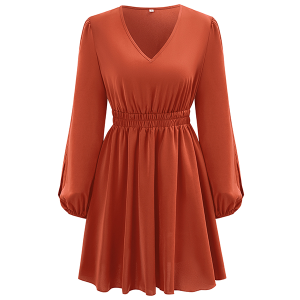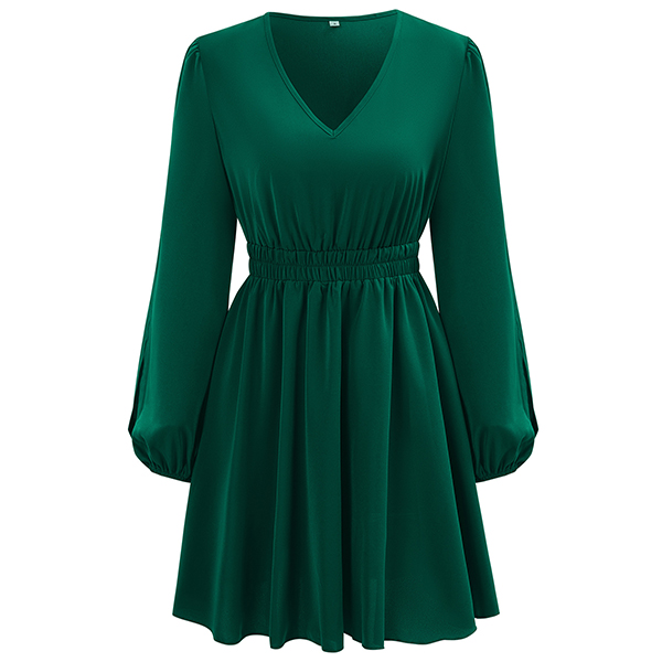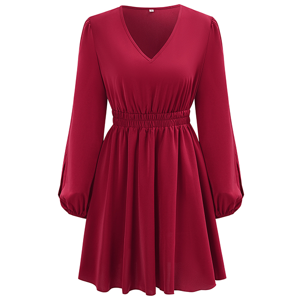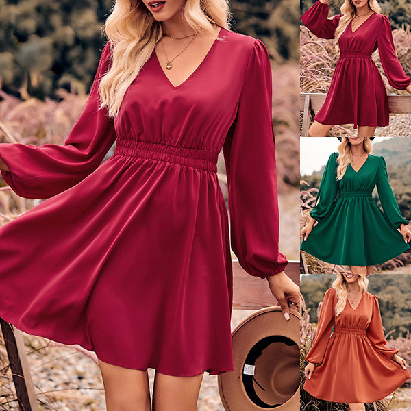 Featuring a V-neckline and long sleeves, this dress offers a classic and timeless design that accentuates your femininity. The solid color adds versatility and allows for easy pairing with various accessories. Hope you like it.