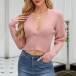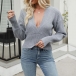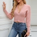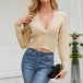 Fashion Solid Color V-neck Long Sleeve Crop Sweater