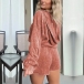 Fashion Solid Color V-neck Long Sleeve Drawstring Waist Hooded Romper