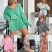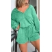 Designed with a flattering V-neckline, drawstring waist, long sleeve, this romper combines comfort, style, and versatility, making it a must-have in your fashion collection.