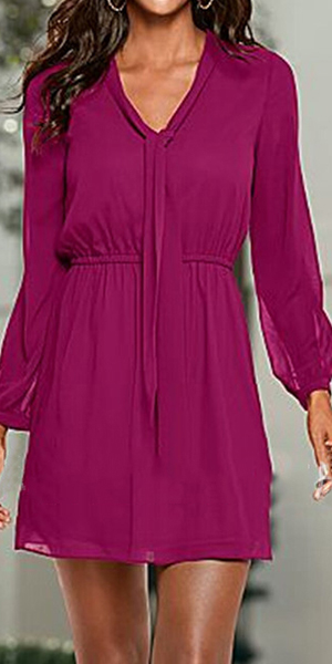 Don't ask me why love this dress! Just look at this piece. Solid color style, designed with v-neck,