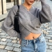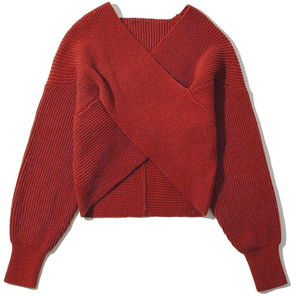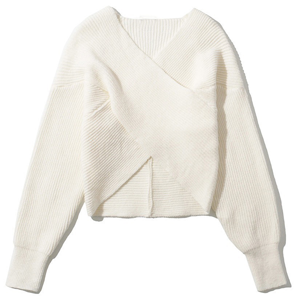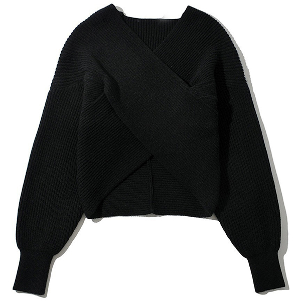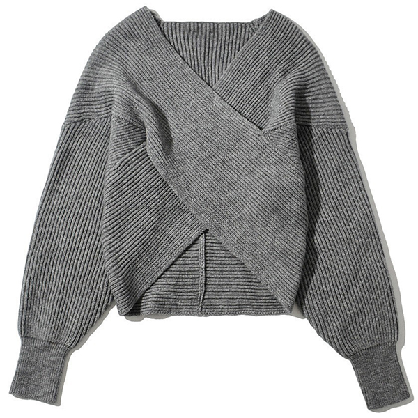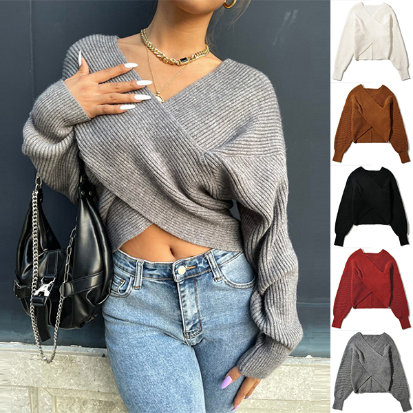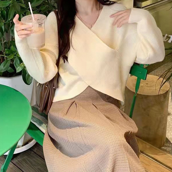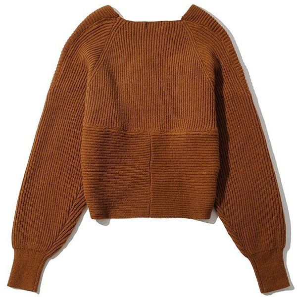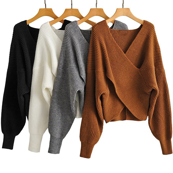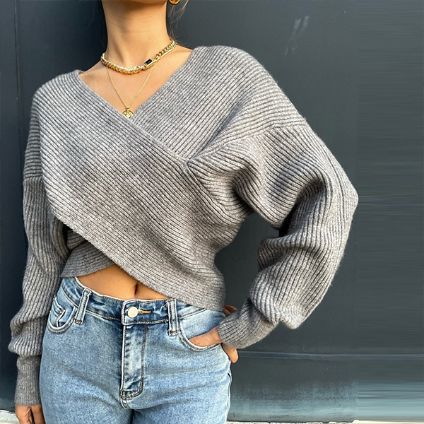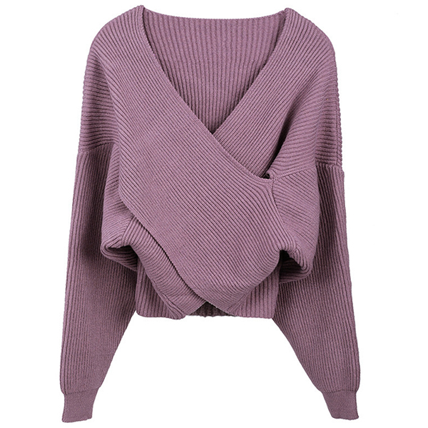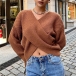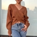 Fashion Solid Color V-neck Long Sleeve Knitted Sweater