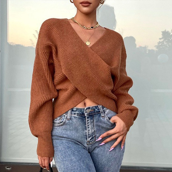 Stay cozy and chic in this Knitted Sweater. This classic sweater features a timeless solid color design and a flattering V-neckline, perfect for adding a touch of sophistication to your outfit. Whether you dress it up with tailored pants for a polished look or pair it with jeans for a casual vibe, this versatile sweater is a must-have for any wardrobe.