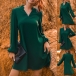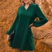 Fashion Solid Color V-neck Long Sleeve Mini Dress