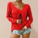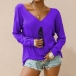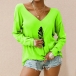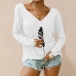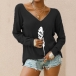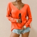 Fashion Solid Color V-neck Long Sleeve Printed Top