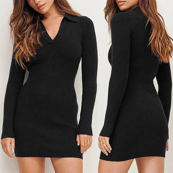 How about this dress? The classic V-neck and long sleeves are timeless and flattering, while the ribbed texture adds a touch of texture and dimension. Color:White,Dark Green,Black,Apricot, which one do you like?