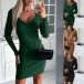 Fashion Solid Color V-neck Long Sleeve Ribbed Bodycon Dress