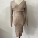 Fashion Solid Color V-neck Long Sleeve Ribbed Dress