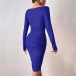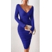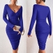 Fashion Solid Color V-neck Long Sleeve Ruched Bodycon Dress