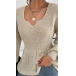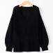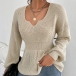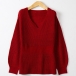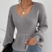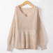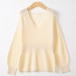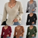 Fashion Solid Color V-neck Long Sleeve Ruffled Knitted Shirt