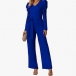 Fashion Solid Color V-neck Long Sleeve Self-tie Jumpsuit