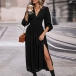 Designed in a midi length, sexy V-neck, long sleeve, and self-tie waist, this dress strikes a balance between a formal and casual look. Perfect for both day and evening events!