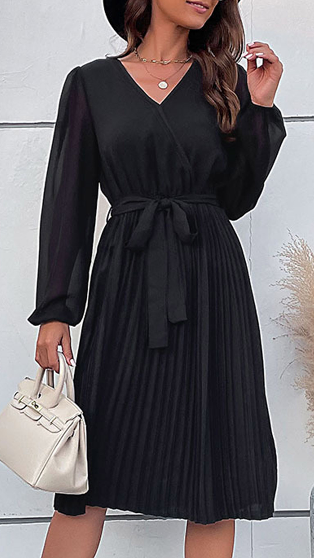 How about this dress? I like the pleated skirt and the self-tie waist design, and you? Perfect for both formal and casual occasions, this dress exudes timeless charm and can be dressed up or down to suit your personal style.