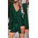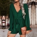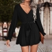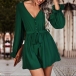 Fashion Solid Color V-neck Long Sleeve Self-tie Romper