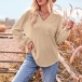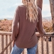 Fashion Solid Color V-neck Long Sleeve Shirt