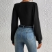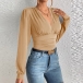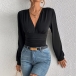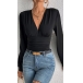 Fashion Solid Color V-neck Long Sleeve Shirt