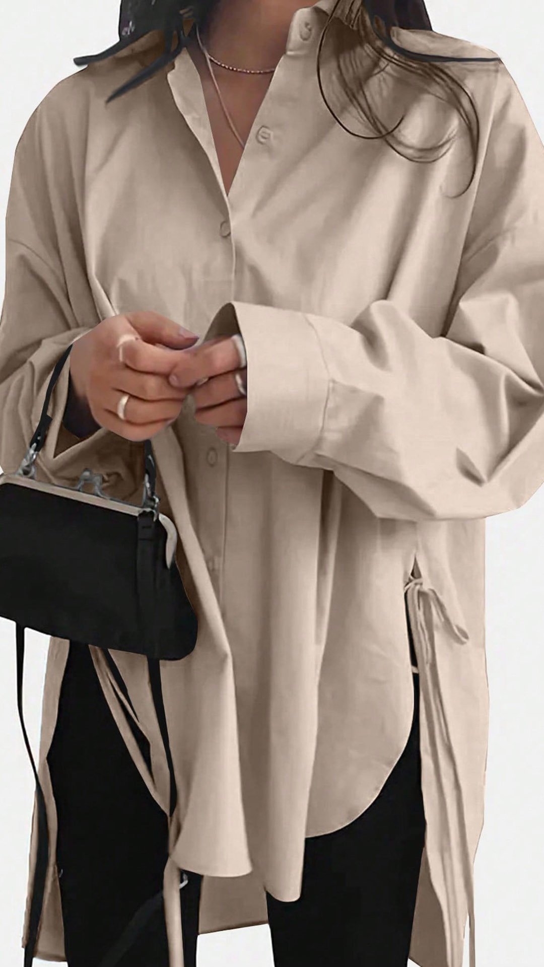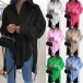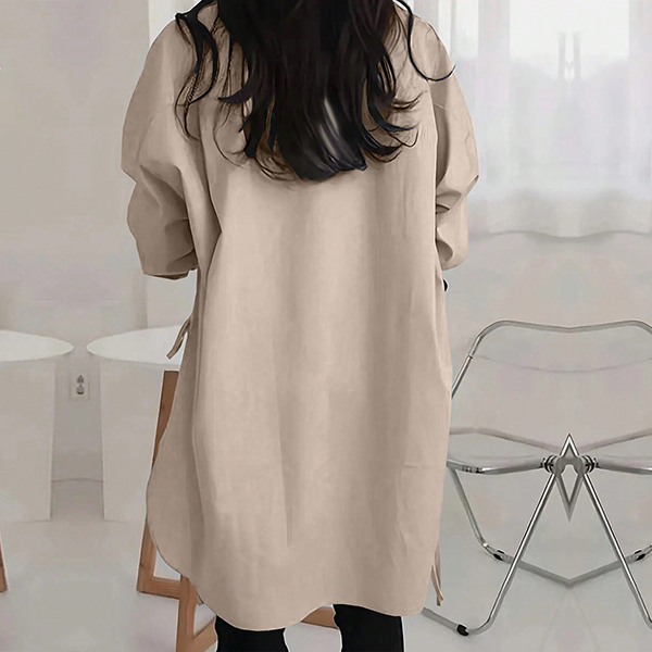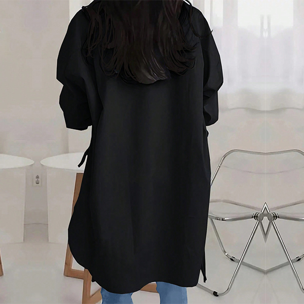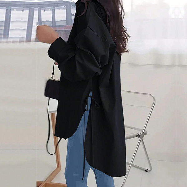 Fashion Solid Color V-neck Long Sleeve Side Slit Blouse