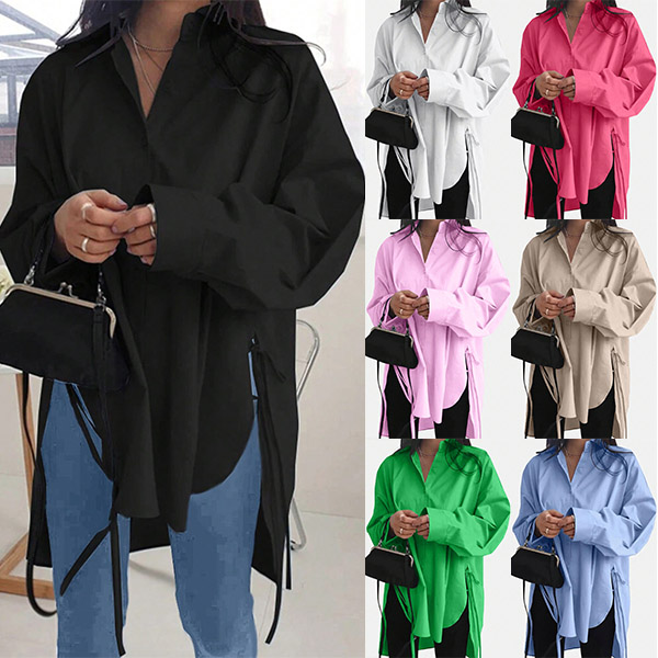 This fashion-forward blouse features a V-neckline, long sleeves, and side slits, creating a chic and versatile look. Multi-colors avabile.