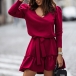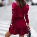 Fashion Solid Color V-neck Long Sleeve Tiered Dress