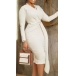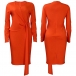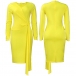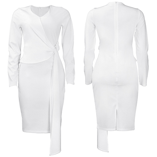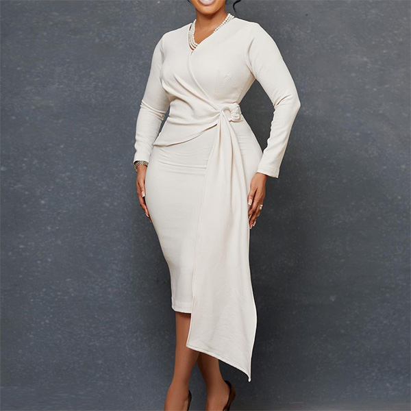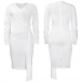 Fashion Solid Color V-neck Long Sleeve Wrap Bodycon Dress