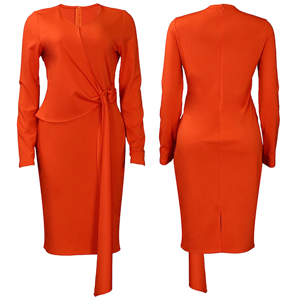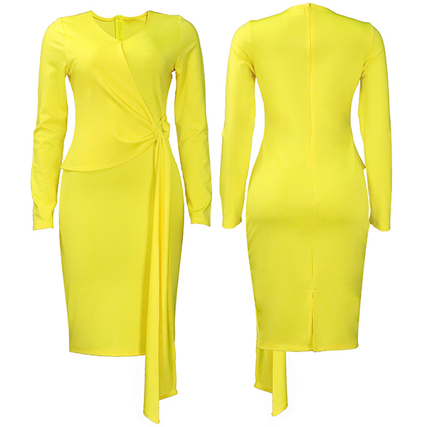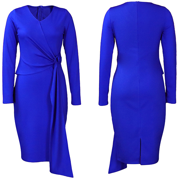 This fashionable wrap dress offers a chic, form-fitting silhouette that flatters the figure. It features a solid color, a v-neck neckline and long sleeves for a sophisticated, elegant look. Multi-colors avabile .