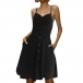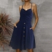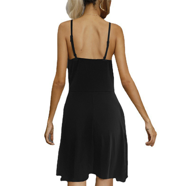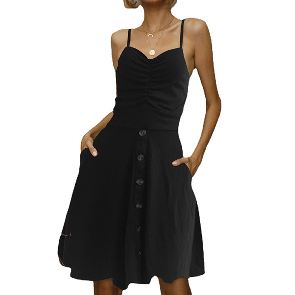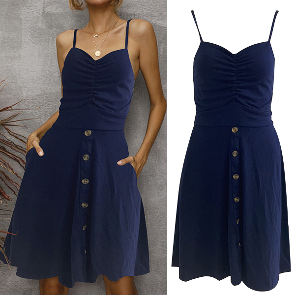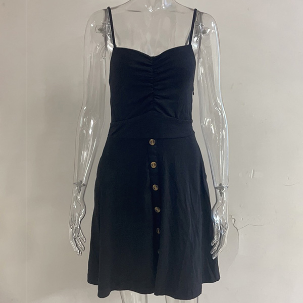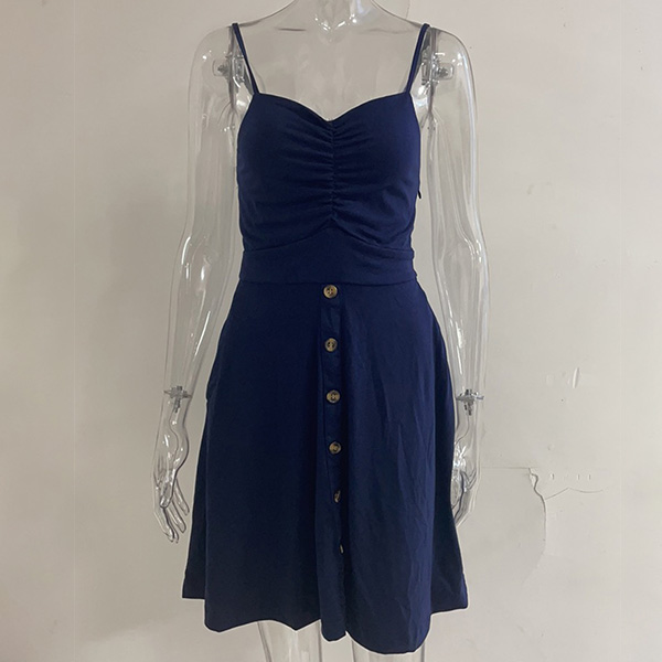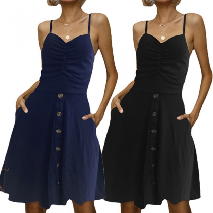 Fashion Solid Color V-neck Ruched Buttoned Slip Dress