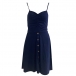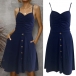 This dress features a flattering V-neckline and a sleeveless silhouette that creates a modern and feminine look that is both elegant and comfortable. The ruched detailing adds a touch of sophistication and texture to the dress, while the buttoned detailing adds a touch of edginess and modernity. Overall, this dress is a must-have for anyone looking for a stylish and versatile piece that can be dressed up or down depending on the occasion.