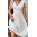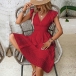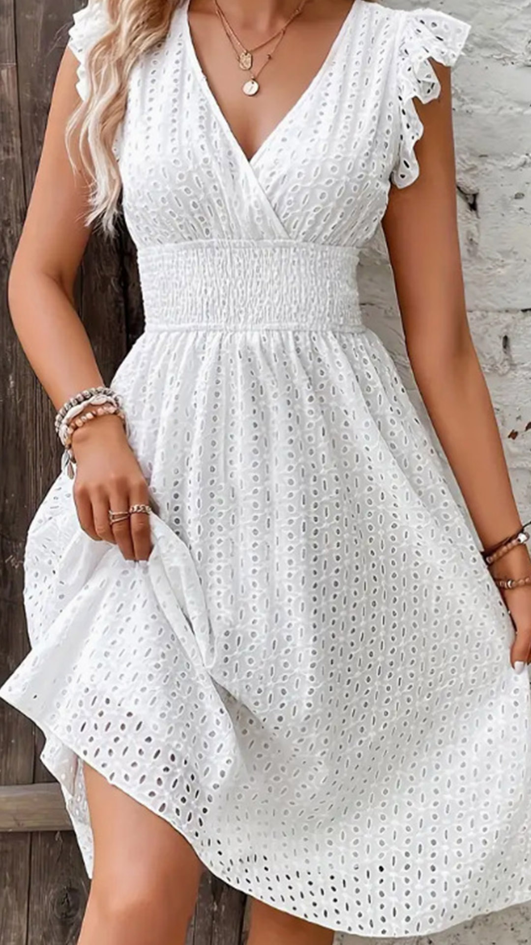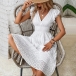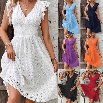 Fashion Solid Color V-neck Ruffle Sleeveless High-rise Hollowout Mini Dress