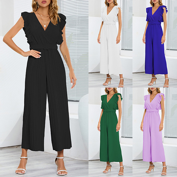 Combinaison plissée pour un look chic et tendance ! Fabriquée dans un tissu léger de haute qualité, cette combinaison présente un décolleté en V flatteur, des manches à volants et un design plissé qui ajoute une touche d'élégance et de féminité à votre tenue. Envie d'en avoir une ?