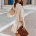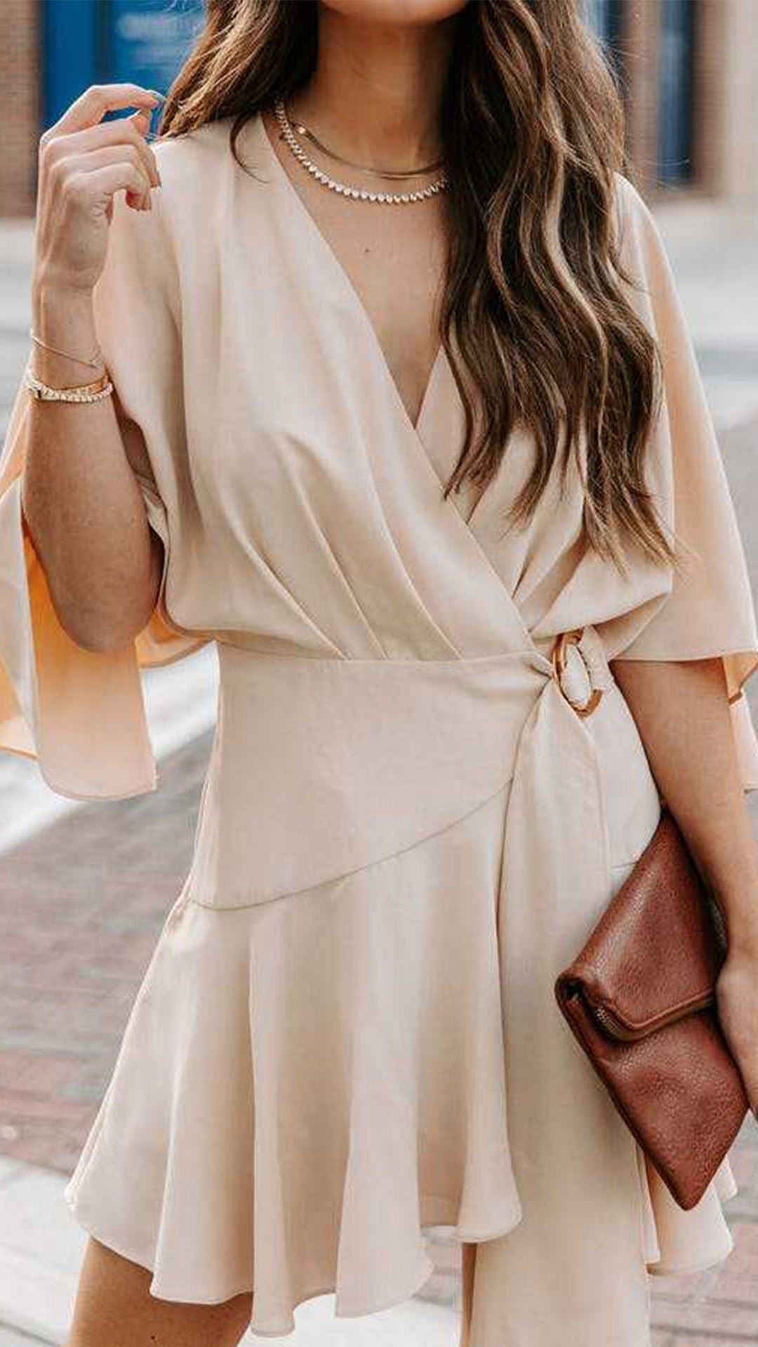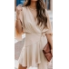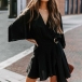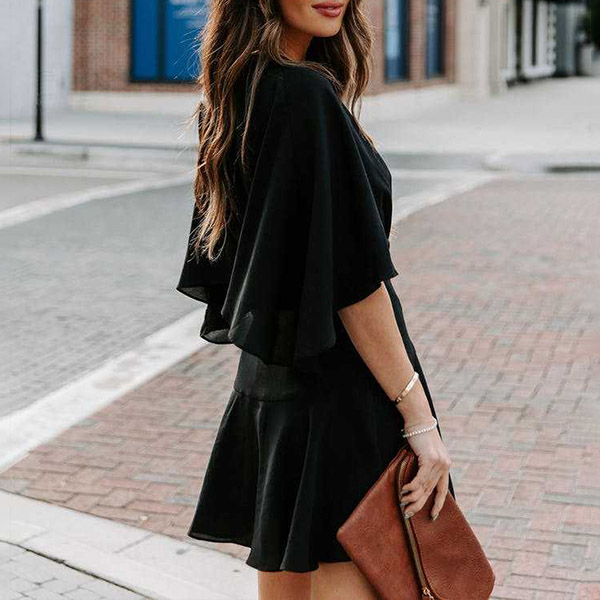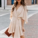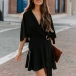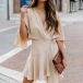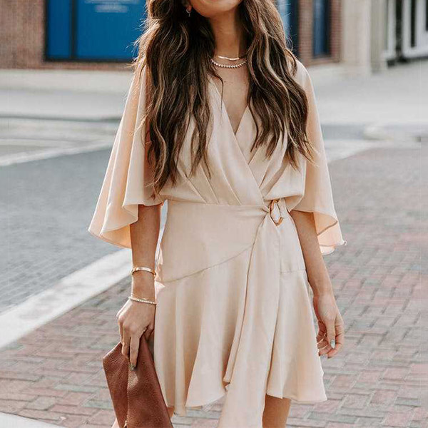 Fashion Solid Color V-neck Ruffled Short Sleeve Self-tie Wrap Dress