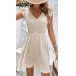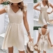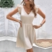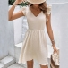 Fashion Solid Color V-neck Ruffled Sleeveless Self-tie Backless Mini Dress