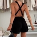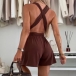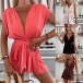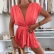 Fashion Solid Color V-neck Self-tie Romper