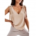 Fashion Solid Color V-neck Self-tie Sleeveless Shirt
