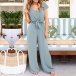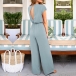 Fashion Solid Color V-neck Self-tie Wide-leg Jumpsuit